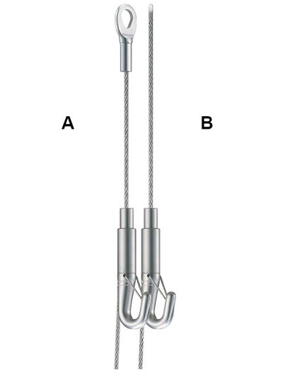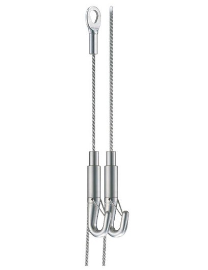 ワイヤ上部がフックに引っ掛けることができるように輪っか状になっており、フリーフック、フリーランナーに対応しています。