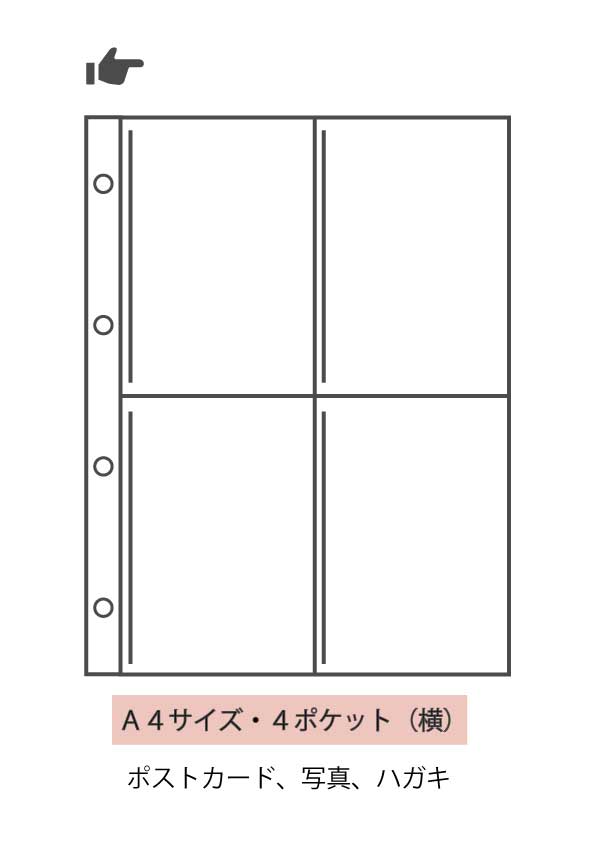 | A4・4ポケット | ポストカード、写真、ハガキ |