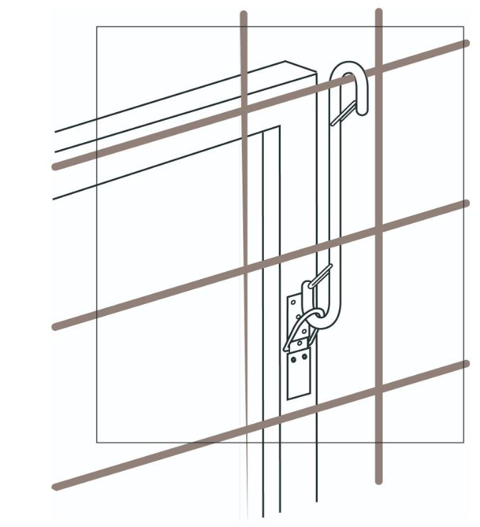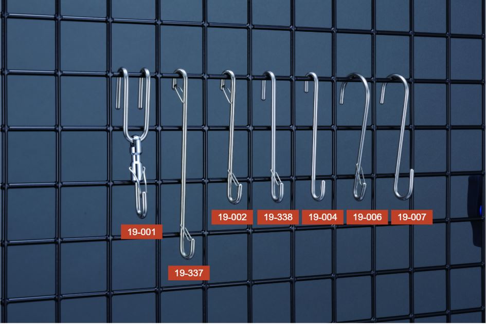 汎用品のS字フックよりも耐久性があり、過去の地震被害を経験に伸びを防ぐ仕様にしました。