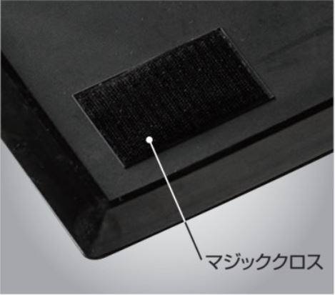 ゴムマットベースの四隅にはマジッククロスがついているため、取り付ける粘着マットが滑りにくくなっています。