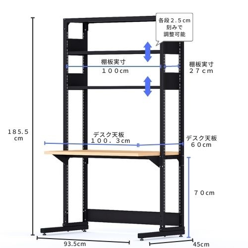 | 間口許容寸法 | 棚板:100cm デスク天板:100.3cm | |