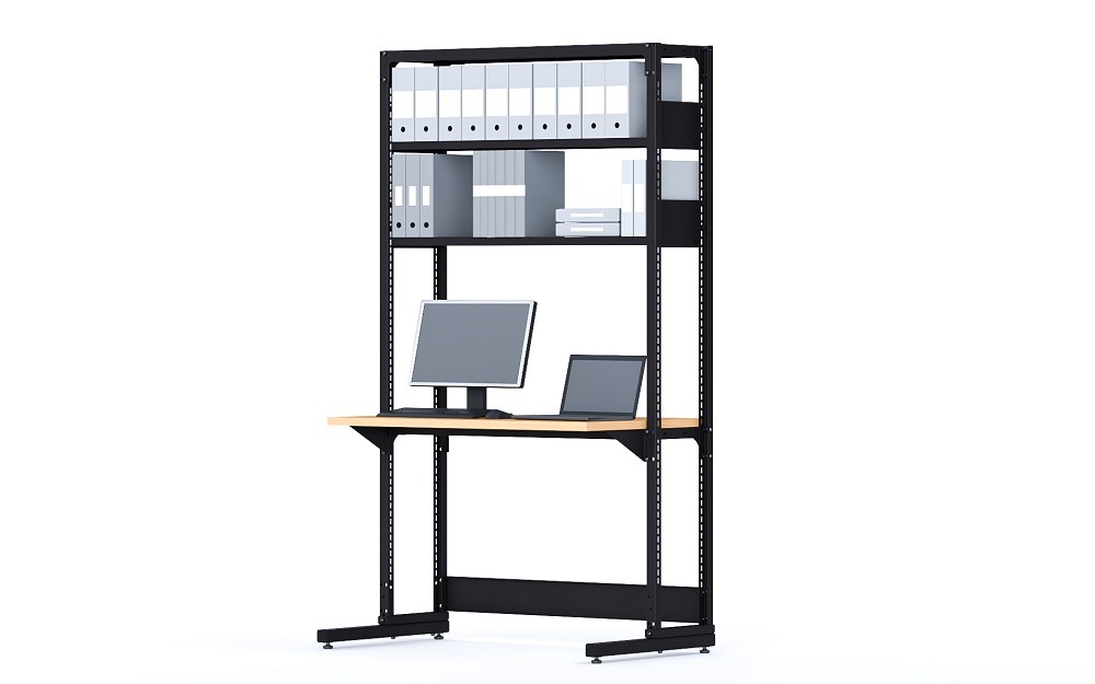 棚とデスク天板はボルトで固定するだけで簡単に組み立てることが可能。