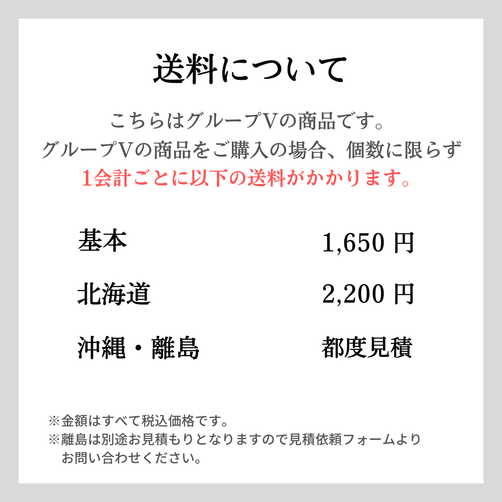 ※沖縄・離島部へのお届けの場合は別途お見積もりとなります。ご注文前に見積依頼フォームよりお問い合わせください。
